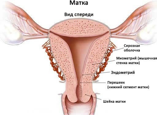 В ее строении выделяют тело и шейку, перешеек – у многих женщин она наклонена вперед. Часть органа расположенная выше уровня отхождения труб – это дно, с правой/левой стороны в самом низу идут ее боковые края, верхние – это углы матки.
