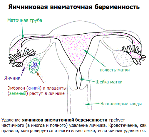 Яичниковая беременность в свою очередь делится на две разновидности:
